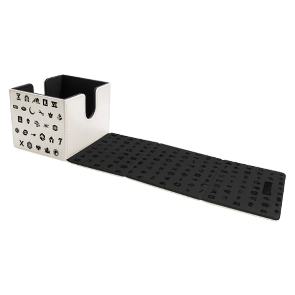 The Alcove Edge Deck Box® for Magic: The Gathering features expansion symbols from the past 30 years of the trading card game debossed onto a leatherette finish, strong magnetic closure, and dual thumb notches for easy access to your deck. Store and protect up to 100 standard size trading cards double-sleeved in Ultra PRO Deck Protector® sleeves. Strong magnetic closure with locking mechanism keep your cards securely stored when not in use.